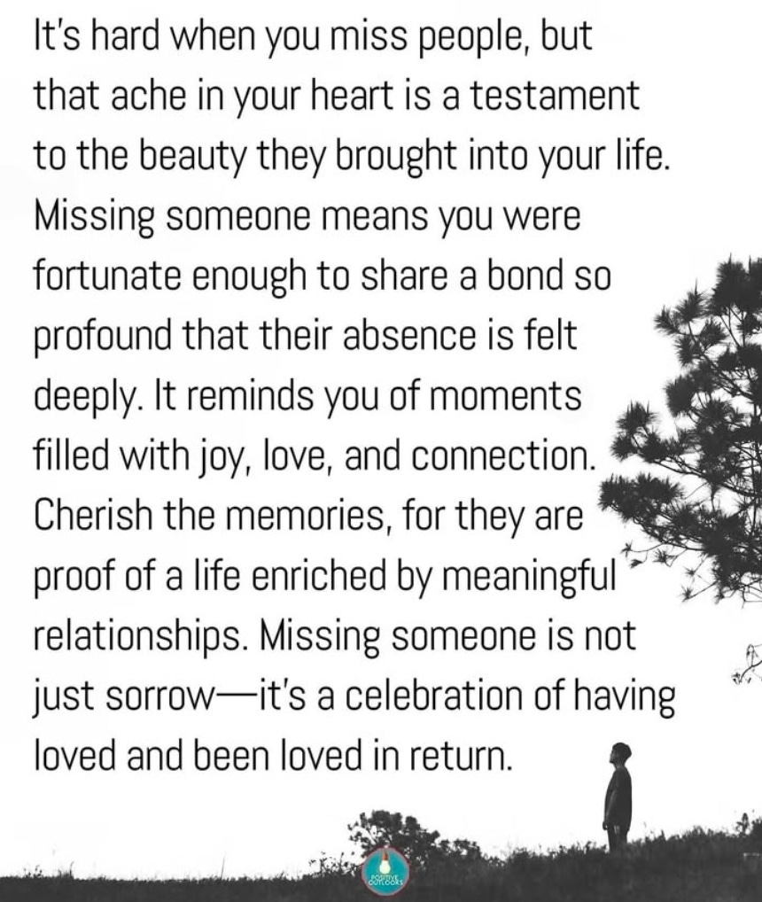 Listen attentively to others when they share their stories and concerns with you and encourage them when they need it. Let people know how much they mean to you. Being seen, heard and accepted are essential for healthy relationships…Connections with others are so important…